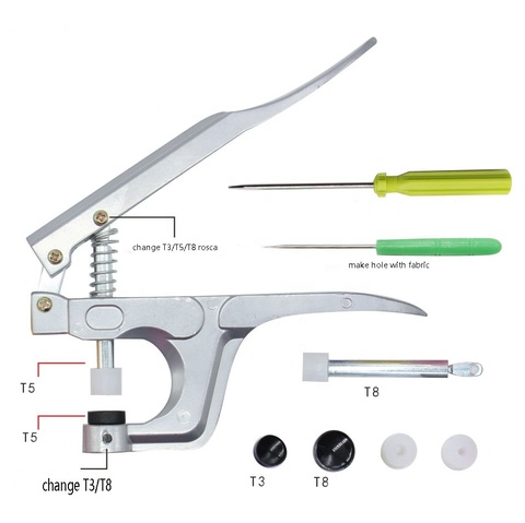 คีมจับยึดพลาสติก, อุปกรณ์ T3T5T8ปุ่มสแนปอุปกรณ์เย็บผ้า